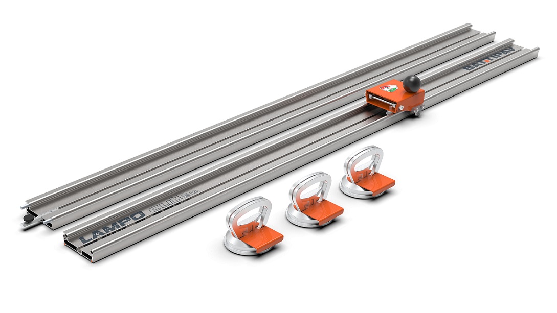 Комплектация: 2 рельсы, 3 присоски, 1 каретка, 2 режущих ролика, 1 разделитель (для толщины до 25 мм), 1 щипцы (для толщины до 7 мм)