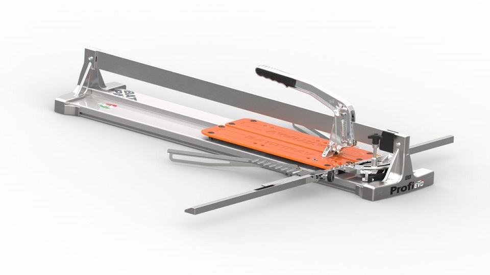 Не будем забывать о ломающей ножке: изготовленная из алюминия с белой резиновой защитой у основания, чтобы не царапать поверхность плитки во время процедуры разлома. Теперь можно сказать, что плиткорез PROFI EVO полностью сделан из алюминия.