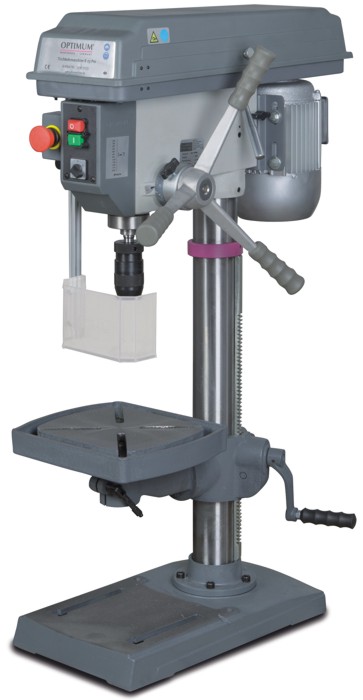 На настольном сверлильном станке OPTIdrill B 23Pro установлен быстросменный высокоточный сверлильный патрон Optimum В 16, позволяющий быстро, без потери рабочего времени, производить смену режущего инструмента.