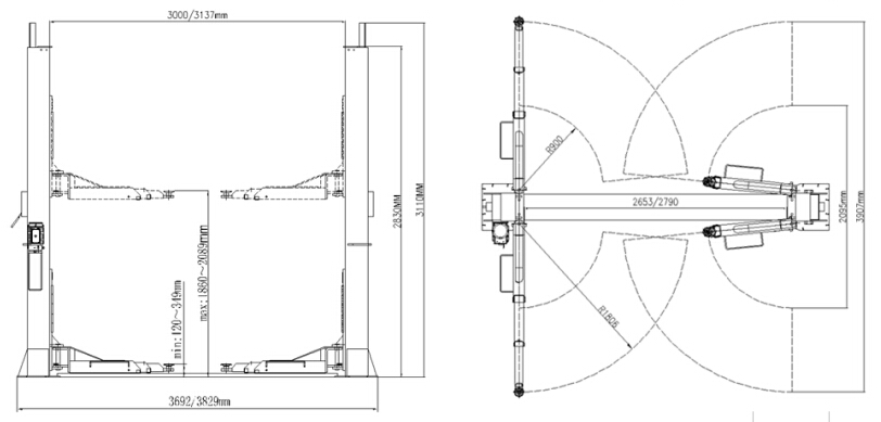 Удобное регулирование ширины подъемника для комфортной работы с разными автомобилями и грузовиками;