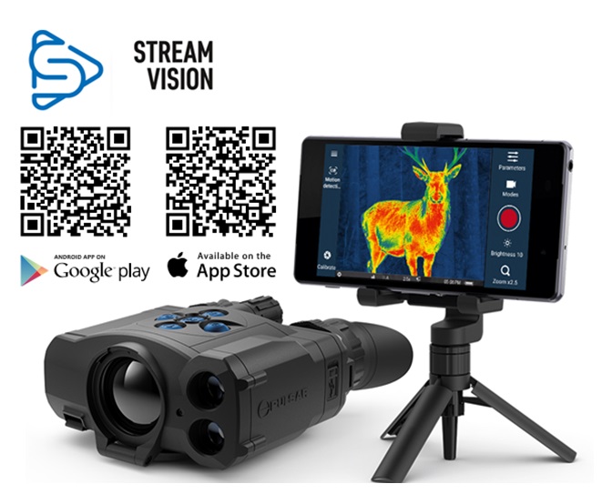 Програмне забезпечення бінокля підтримує роботу з відомим мобільним додатком від Pulsar - «Stream Vision». Завантажити його можна в найпопулярніших магазинах App Store і Google Play, перейти в які можна, просто відсканувавши QR код на нашому сайті. Додаток дозволяє інтегрувати бінокль з будь-яким цифровим пристроєм під управлінням операційних систем iOS і Android. З'єднання відбувається по стандартному протоколу Wi-Fi. Дана програма надає користувачам цілий набір можливостей: