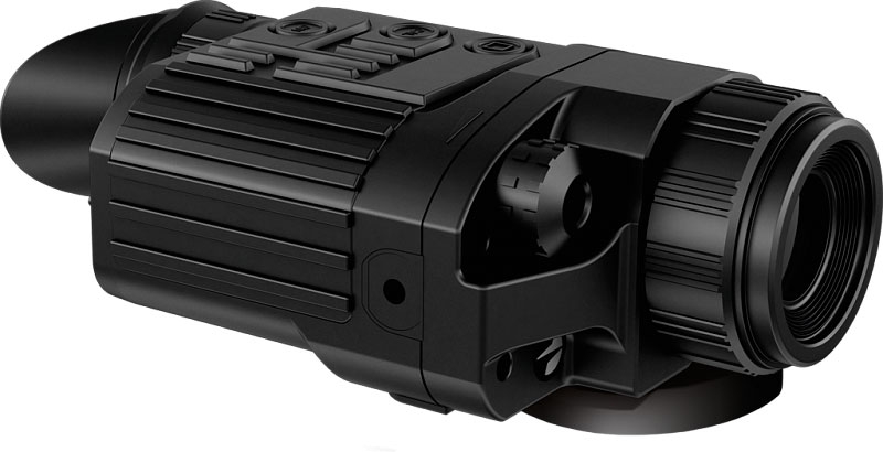 Оптическое увеличение тепловизора составляет 2.1х. При этом прибор имеет дополнительную опцию в виде двукратного цифрового зума.