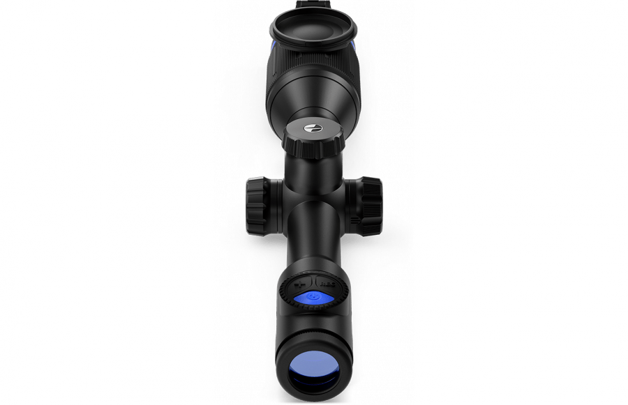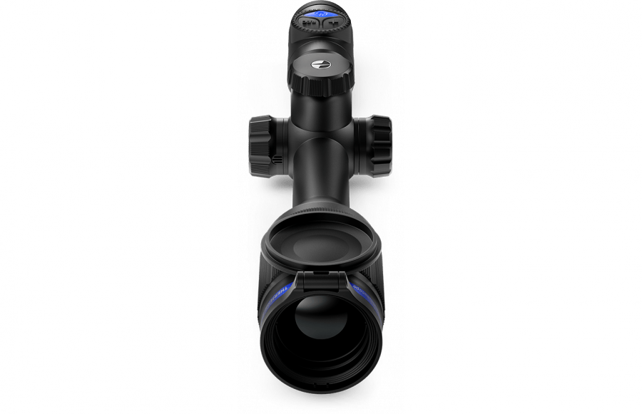 Прицел Thermion XQ50 имеет простое управление функциями и настройками с помощью 3-х кнопок на верхней панели и энкодера слева. 3 кнопки и энкодер обеспечивают доступ и управление всеми функциями меню, и системными настройками.