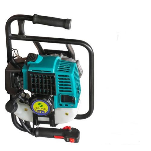 Двигатель на мотобур бензиновый Sadko AG-52N - 2-тактный бензиновый двигатель, мощность 2.8 лошадиных силы, с экономным потреблением топлива. Бур запускается ровно и плавно ручным стартером, оснащен системой охлаждения, владеет значительным моторесурсом. Пластиковый корпус и алюминиевая камера сгорания с усиленным цилиндром и поршнем. Особенностью двигателя будет система запуска "Лёгкий старт". Встроенная пружина разгоняет стартер до половины необходимого оборота, вам остаётся только потянуть за шнут стартера на вторую половину. Система "лёгкий" пуск используется на мотокосах, бензопилах и другом премиумном классе техники. Считается показателем комфорта и повышенного удобства. Двигатель крепится к металлической раме, удобен в пользовании, не мешает, не цепляется, не имеет лишних выступающих частей. Степень вибрации - небольшая. Выхлоп сгоревших газов выводится в сторону, не мешает при бурении. Sadko