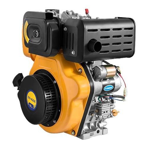 Sadko DE-420E: мощный дизельный двигатель — 10 л.с. За счёт повышенной мощности выполняется работу, задания, пожелания оператора легче и быстрее. Большой по объёму двигатель — 420 кубических сантиметров. Экономный расход топлива. Дизельные двигатели никогда не отличались повышенным расходом, а поскольку цена на дизель меньше, чем на бензин, то выгода двойная. Декомпрессионный клапан есть. Он сбрасывает давление до атмосферного, позволяя топливной смеси заполнять весь объём камеры и гарантируя поджигание. Запуск через электростартер. Батарея на корпусе хранит заряд и пуск двигателя выполняется нажатием кнопки. Подходит для тех случаев, если вы работаете целый день и останваливаетесь для обеда либо небольшого сервиса. Каждый раз запускать двигатель с помощью троса может доставлять небольшие неудобства, поэтому для таких случае идеально подходит электростарт. топливный бак объёмом в 5.5 литра. Вал под шпонку, 72 мм в длину, диаметр 25 мм, вращение по часовой стрелке. Необходимы масла, которые обладают антикоррозийными свойствами, предотвращающие образование высокотемпературных отложений. Поскольку сила сгорания в двигателе очень высокая, то проверяйте именно этот параметр на вашем масле. Новая схема отвода выхлопных газов допускает использование топлива даже с высоким содержанием серы.