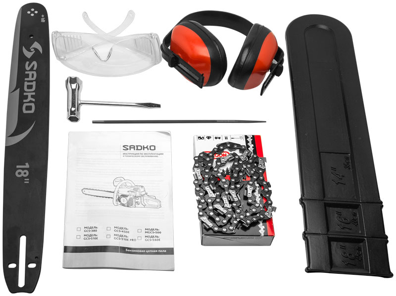 Бензопила SADKO GCS-510E PRO — профессиональная комплектация нашего универсального инструмента, который представляет собой не только качественное оборудование само по себе, но ещё и расширен дополнительными защитными аксессуарами. В расширенной поставке идут: защитные очки, наушники и перчатки. Вы становитесь настоящим современным садоводом, обладая подобной пилой.