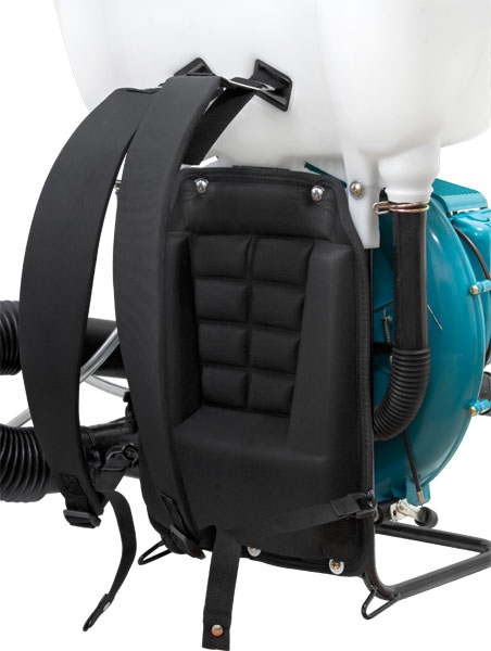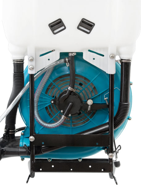 Распылитель оснащен мощным двигателем - 5 л.с. и нагнетательным насосом, обеспечивающим оптимальное давление жидкости. Опрыскиватель позволяет вести обработку с впечатляющей дальностью распыления, до 15 м. Высокая скорость и качество обработки больших посевов достигается за счет образуемого опрыскивателем мелкодисперсного тумана. Удобная рукоятка управления обеспечивает легкость в использовании и максимальный контроль над рабочим процессом. Опрыскиватель позволяет распылять как жидкости, так и сухие препараты. В комплектации 2 сменные насадки для обычного широкого и вертикального узконаправленного распыления. Насадки позволяют направленно распылять препараты нужным способом обработки. Кран подачи жидкости имеет 5 положений. Он позволяет регулировать расход препаратов в соответствии с типом выполняемой работы.