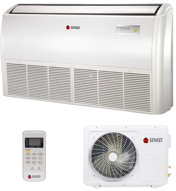 SENSEI SUХ-18TW/SХ-18TW– современная, качественная сплит-система с инверторной технологией, которая состоит из стандартного наружного блока и напольно-потолочного внутреннего блока, предназначена для качественного охлаждения и обогрева воздуха в любом помещении площадью до 50 м. кв. Напольно-потолочный кондиционер предназначен для установки в помещениях, где нет подвесного потолка и нет возможности монтировать внутренний блок на стену. Данная модель может быть установлена под потолком или в нижней части стены ближе к полу. Если есть необходимость спрятать внутренний блок, то его можно установить в нишу или под окном и прикрыть шторой.