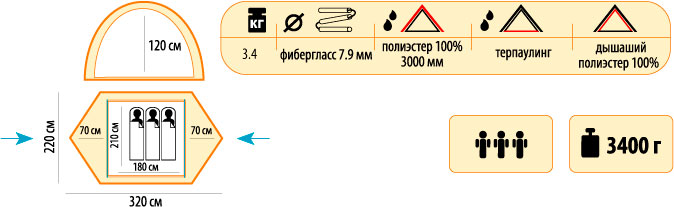 - Тент: 100% полиэстер, 75D/190T WR PU 3000 мм в ст