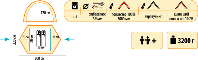- Тент: 100% полиэстер, 75D/190T WR PU 3000 мм в ст