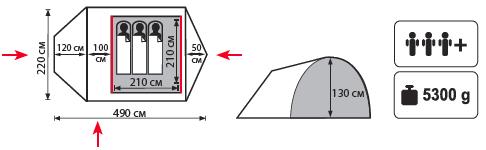 - Тент: 100% полиэстер 75D/190T WR PU 3000 мм в ст
