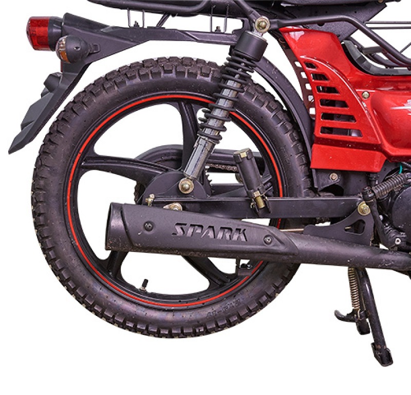 Комфорт при поездке создают установленные пружинные амортизаторы. Мотоцикл удобен и прост в обслуживании и эксплуатации, а четырехтактный двигатель с допустимым рабочим объемом 120 куб. см, обслуживаемый моторным маслом марки SG и SF, предоставит удовольствие от поездки.