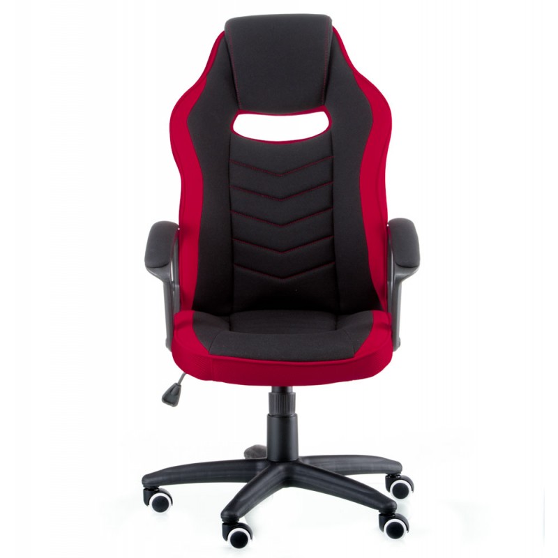Материал покрытия: сиденье и спинка - черная мебельная ткань с вставками по краям из красной мебельной ткани