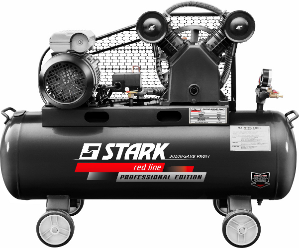 Stark 30100-SAVB Profi – масляный поршневой одноступенчатый 2 цилиндровый компрессор предназначен для промышленного использования и строительных работ.