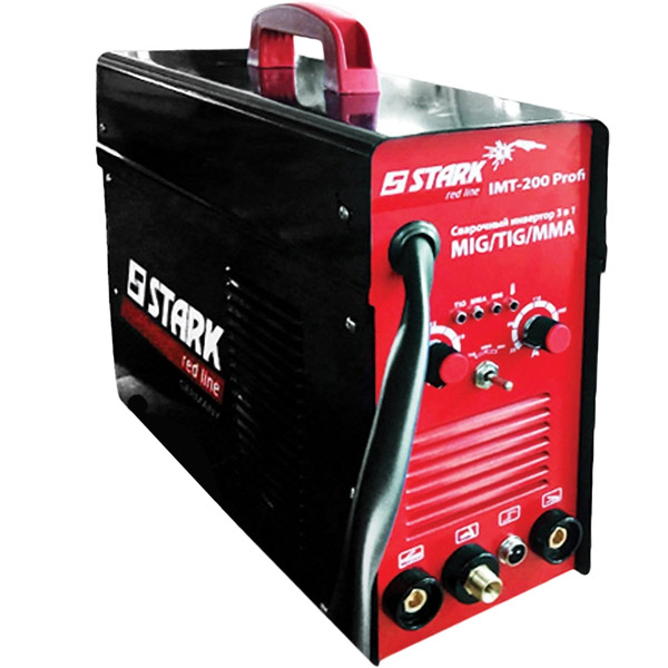Stark IMT-200 PROFI 3 в 1 — профессиональный сварочный инвертор, идеально подходящий для сварки: черных металлов, высоколегированной нержавеющей стали, чугуна, меди и других цветных металлов и сплавов.