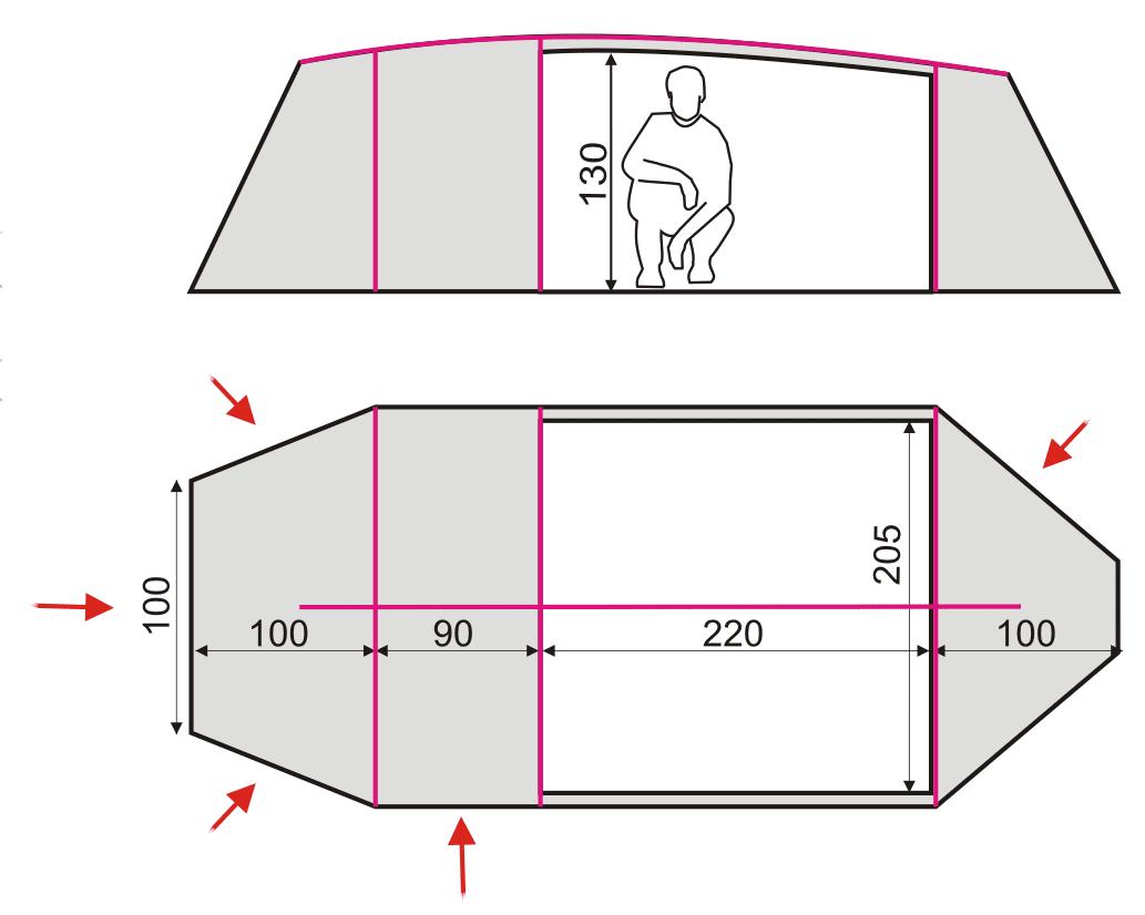 Просторная и комфортная модель 4-х местной палатки, используемая в течение всего года. Устойчивая конструкция их 4-х наружных дуг позволяет устанавливать тент без спального помещения, а также обеспечивает простую и быструю сборку и разборку всей палатки. Большой и удобный передний тамбур для снаряжения. Два входа дают возможность прямого доступа в спальню и обеспечивают идеальную вентиляцию.