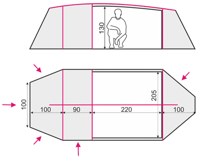 внешний тент:185T Polyester Rip Stop 4000 мм