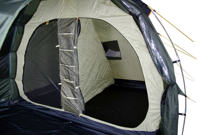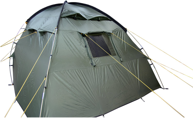 Гарантированная скидка при заказе+Бесплатная доставка по Украине !!! Максимально комфортная палатка для семейного отдыха. Просторный передний тамбур имеет два входа продублированные антимоскитной сеткой и в нем можно вместить стол, стулья и кемпинговую кухню. При необходимости спальное помещение можно разделить быстросъемной перегородкой. Для большего уюта и комфорта можно пристегнуть дополнительный пол в тамбур (входит в комплект). Конструкция позволяет использовать тент без спального помещения как столовую, склад или базовую палатку.