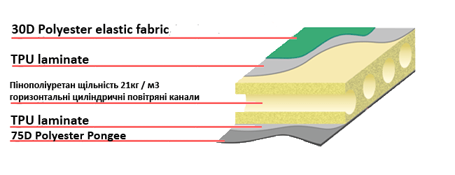 Наповнювач — Пінополіуретан (щільність 21кг/м3)