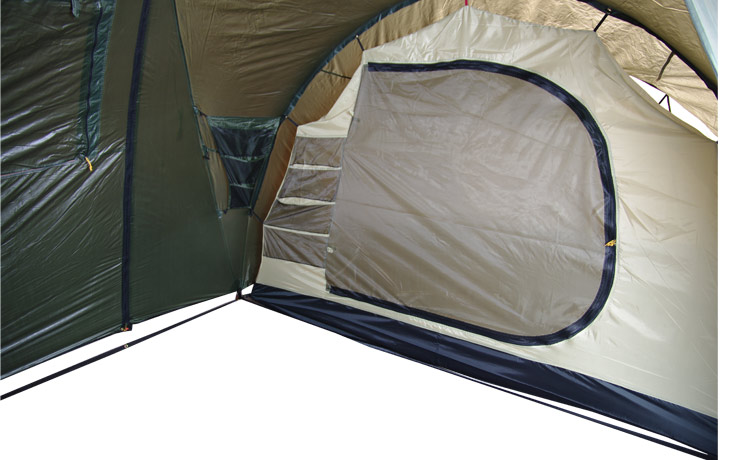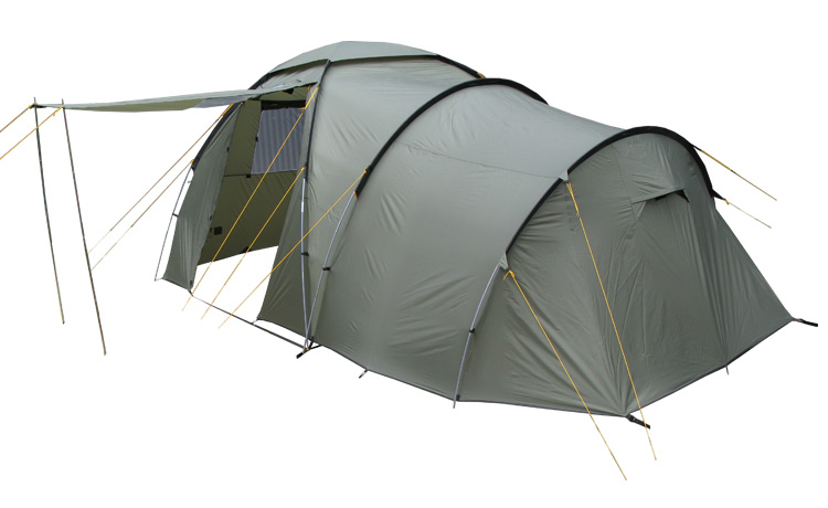 Высококлассная семейная пятиместная палатка для длительного отдыха, трехсезонного назначения. Просторный и высокий тамбур идеально подходит для размещения багажа или организации кемпинговой кухни. Возможность входа в тамбур с двух сторон и эффективная вентиляция обеспечивают необходимый комфорт. Конструкция позволяет использовать тент без спального помещения.
