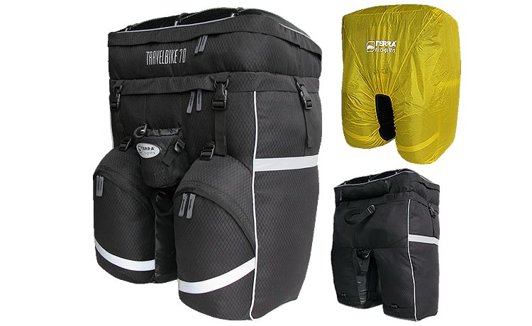 Абсолютно бесплатная доставка по Украине !!! При наложенном платеже комиссия перевозчика за счёт магазина !!! Практичный однообъемный велорюкзак (классические "штаны") объемом 50L и 70L для дальних велоэкспедиций. Предусмотрены лямки для переноски на спине, убирающиеся в специальные карманы. Благодаря гибкой конструкции крепления с помощью застежек "FASTEX" подходит для задних багажников практически любого размера. Снабжен непромокаемым чехлом от дождя, светоотражателями сзади и с боков. Дно и части, обращенные к багажнику и колесам, усилены жесткой моющейся тканью и продублированы уплотнителем.