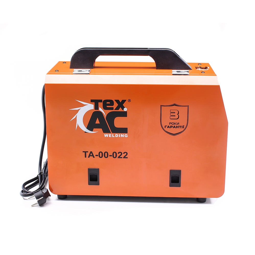 Полуавтоматический сварочный аппарат Тех.АС ТА-00-022 рассчитан на выполнение сварочных работ в одном из двух режимов. Основной режим в инверторе - MIG/MAG/FLUX. В данном режиме аппарат выполняет сварочные работы сплошной сварочной проволокой до 1.2мм. Для выполнения сварочных работ по конструкционным сталям, применяется режим ММА. В режиме ручной дуговой сварки выполняет работы штучным электродом до 5мм. Для увеличения комфорта оператора на лицевой панели аппарата расположены все переключатели и регулировки, отвечающие за выставление рабочих характеристик. Размещен переключатель между режимами MIG/MAG/FLUX и MMA. Также есть три плавных регулятора, отвечающие за выставление напряжения, индуктивности и силы тока. Выставленные характеристики напряжения и силы тока отображаются на двух дисплеях. На лицевой панели расположена кнопка принудительной протяжки сварочной проволоки и индикатор, который включается в случае перегрева сварочного аппарата. Установленный механизм подачи сварочной проволоки в ТА-00-022 выполнен из металла. Все компоненты изготовлены из высококачественного металлического сплава. Беспрерывная подача проволоки осуществляется через подводящий механизм в сварочный рукав при помощи прижимного и переменного ролика, позволяя выполнять сварочные работы сплошной сварочной проволокой диаметром от 0.8 до 1,2мм.