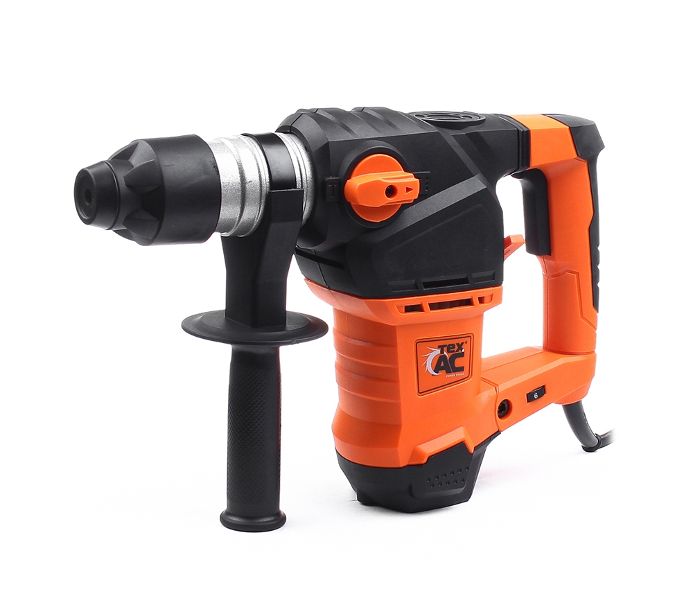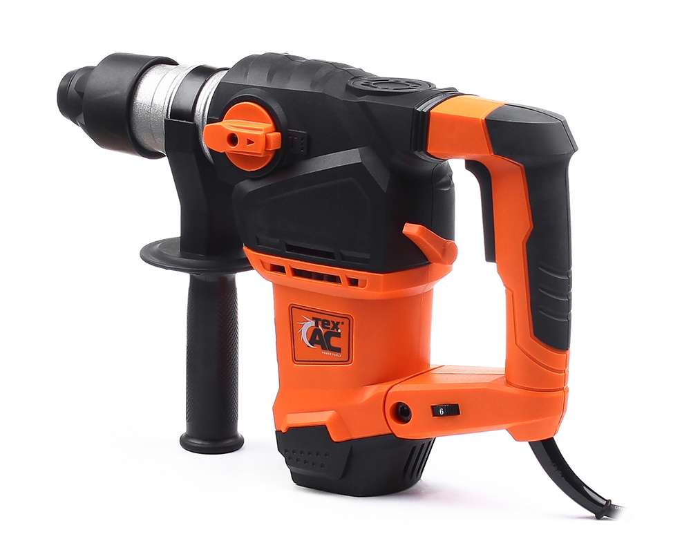 Перфоратор Тех.АС ТА-01-305 выполняет работы в одном из трех режимов, предназначенных максимально упростить выполнение строительных работ. Основной режим в перфораторе ТА-01-305 это сверление + удар. В данном режиме выполняется большинство работ. Второй режим переводит перфоратор в режим отбойного молотка. Выполняются работы по отбиванию или разбиванию строительных материалов. Третий немаловажный режим — это сверление. В данном режиме перфоратором выполняют сверлильные работы. Также режим сверления служит для замешивания различных строительных смесей. ТА-01-305 с вертикальным расположением электромотора укомплектован несколькими переключателями, при помощи которых оператор включает один из трех режимов. Данные переключатели отвечают за выставление режима сверление + удар, удар и сверление. Помимо базовых переключателей режимов на корпусе размещено управление количеством холостых оборотов. Благодаря этой функции пользователь выставляет необходимое значение оборотов холостого хода, что делает работу с перфоратором Тех.АС ТА-01-305 более комфортной.