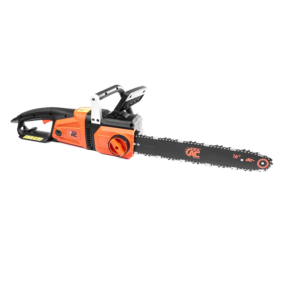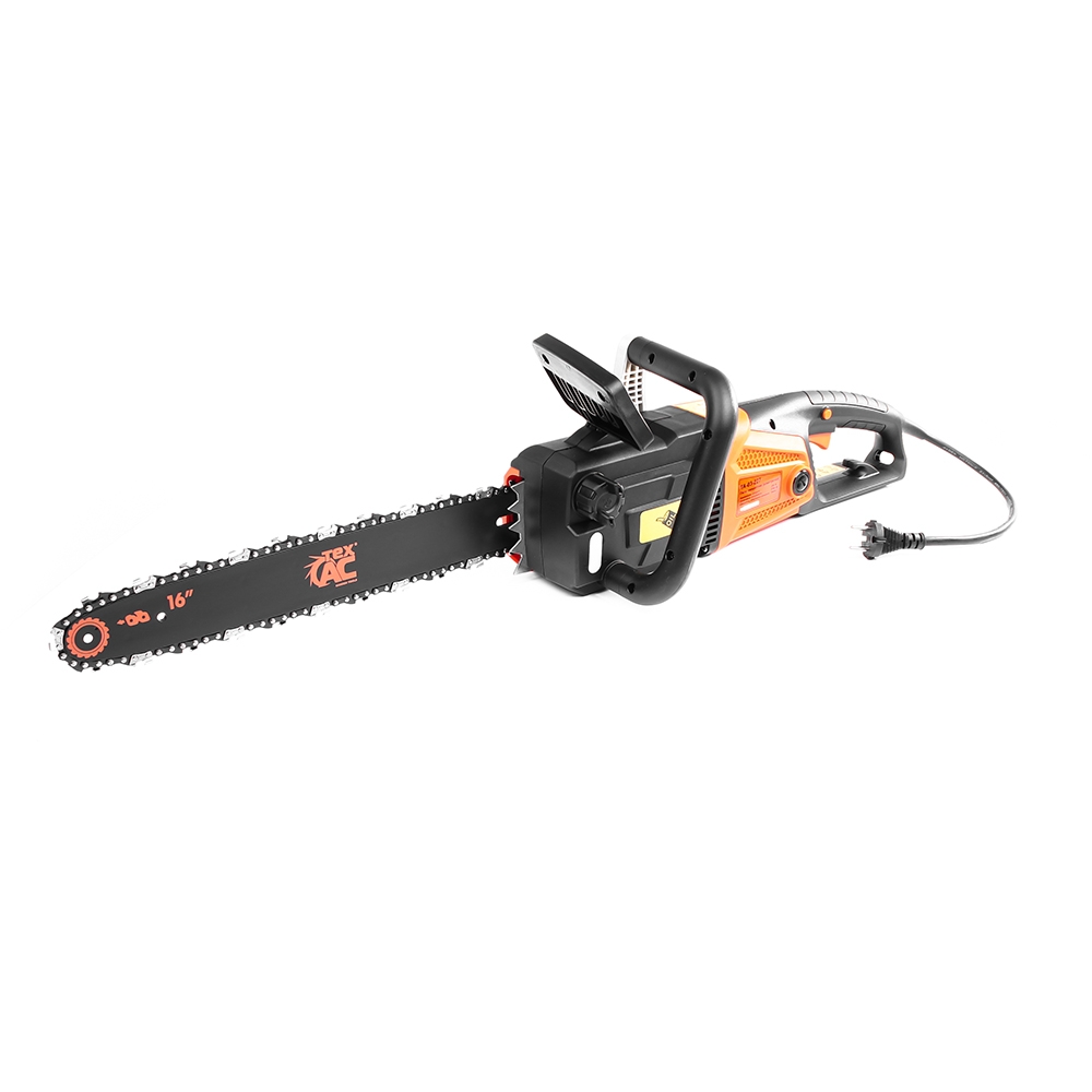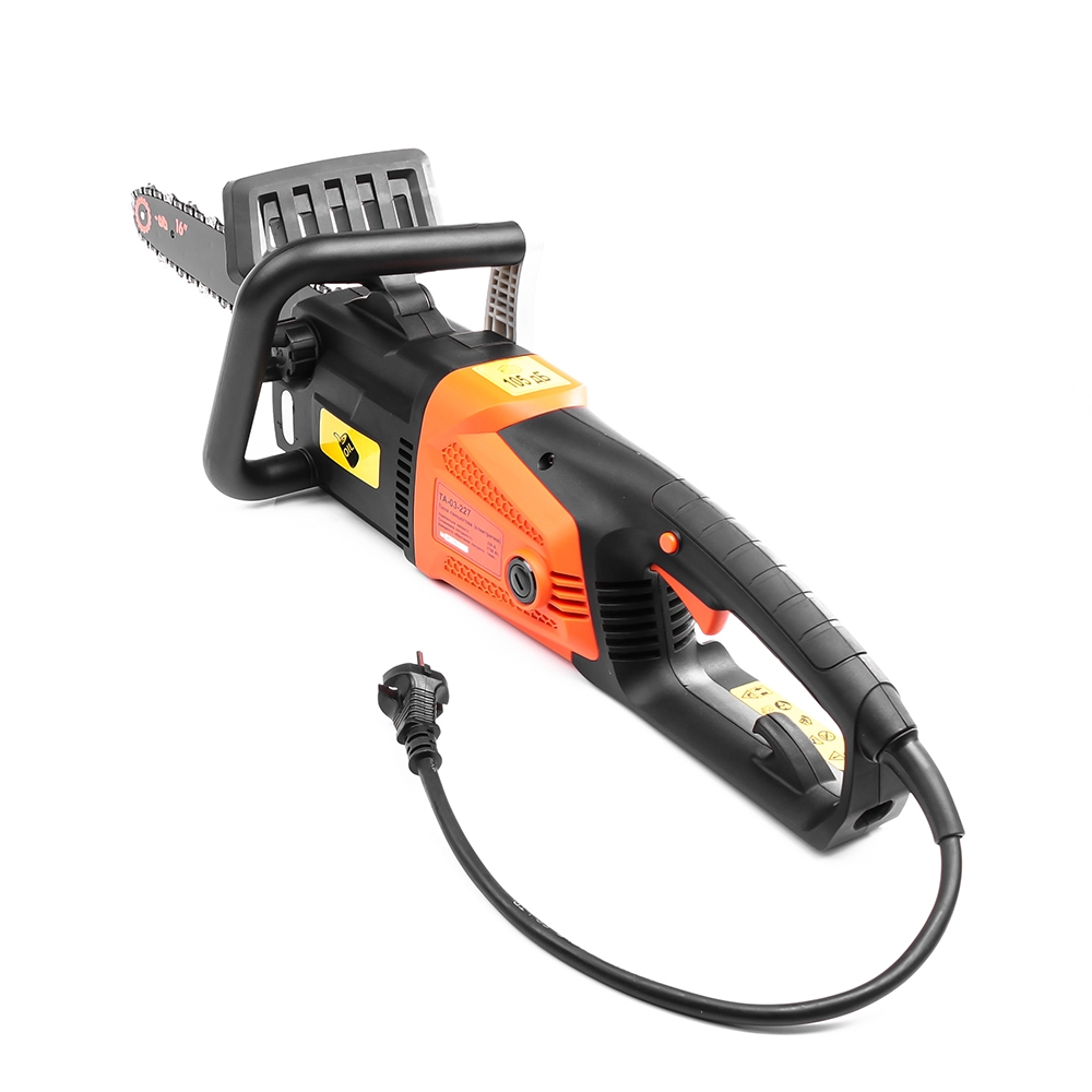 В электропиле Тех.АС ТА-03-227 установлена система быстрого натяжения цепи без применения ключа. Пользователю достаточно ослабить прижимной механизм крышки и провернуть натяжитель цепи. При этом шина будет двигаться вперед или назад, ослабляя или увеличивая натяжение. Данный механизм значительно сокращает затраченное время на натяжение цепи и пользователю нет надобности носить с сбой дополнительный инструмент. Электропила комплектуется электромотором мощностью 2700Вт. Применение медной обмотки при изготовлении электромотора позволяет получить большую мощность и сохранить небольшие габариты двигателя. Для защиты обмотки применяется многослойная лакировка, что позволяет увеличить срок эксплуатации и защитить мотор от внешнего механического воздействия.