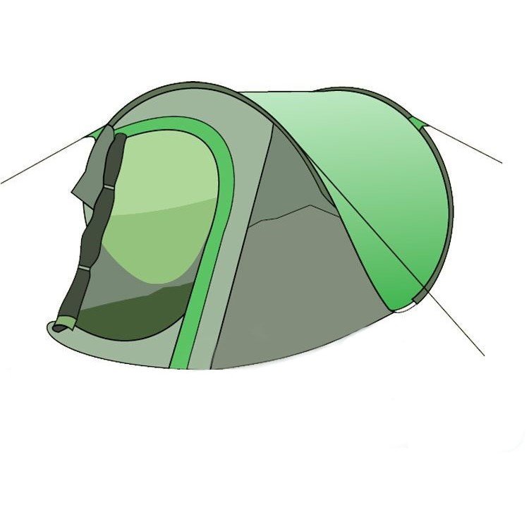 Легкая двухместная однослойная палатка туннельного типа с автоматической системой установки типа «Восьмерка».