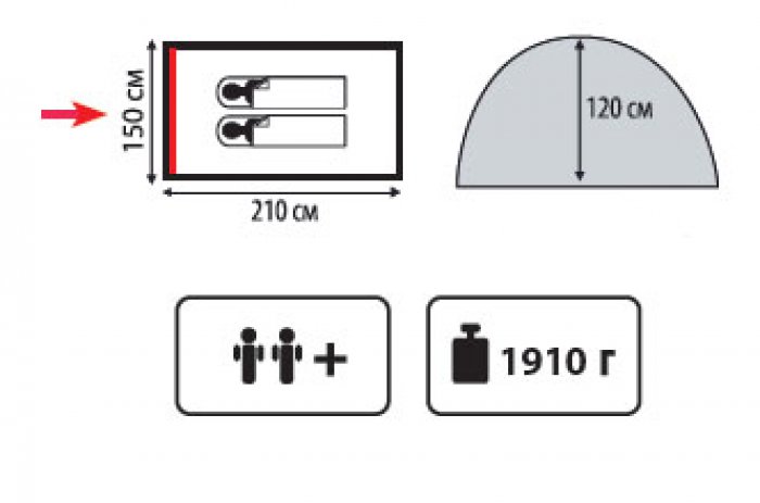 - Тент: 100% полиэстер 75D/190T WR PU 2000 мм в ст - Дно: Армированный полиэтилен (терпаулинг) - Каркас: фибергласс, 7,9 мм - Вес: 2.3 кг