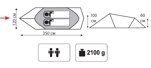 - Внутр. палатка: 100% дышащий полиэстер