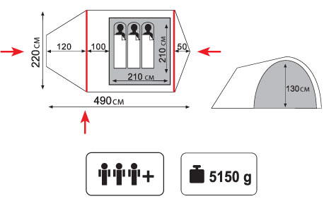 - Тент: 100% полиэстер 75D/190T Diamond RipStop, 8000 мм в ст