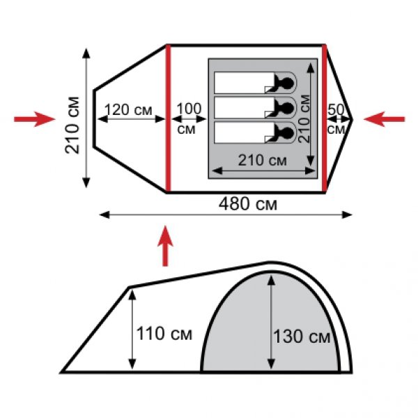 - Палатка имеет 3 вентиляционных клапана с регулируемой по высоте стойкой