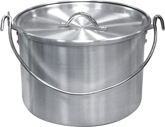 Большой походный алюминевый котел с крышкой объемом 13 литров, позволит за один раз приготовить обед, ужин или завтрак на многочисленную компанию.