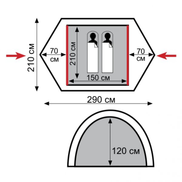 - Тент: 100% полиэстер 75D190T RipStop, PU 5000 мм в ст
