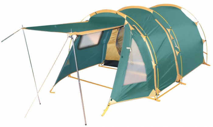 - Палатка тоннельного типа с большим тамбуром.