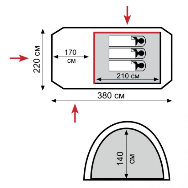 - Внутр. палатка: 100% дышащий полиэстер