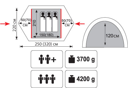 - Внутр. палатка: 100% дышащий полиэстер