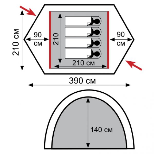 - Палатка предназначена для серьезных туристических походов в любое время года и любых погодных условия