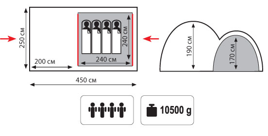 - Двухслойная кемпинговая палатка с двумя входами, большим тамбуром