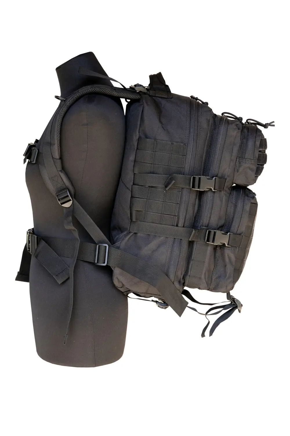 - На наружной стенке рюкзака 2 дополнительных кармана на молнии с панелью из велкро для размещение опознавательных знаков.