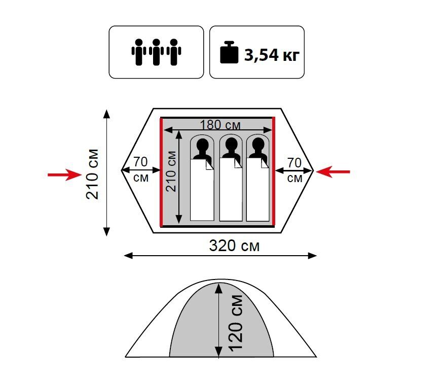 - Двухслойная палатка с двумя входами продублированными противомоскитными сетками