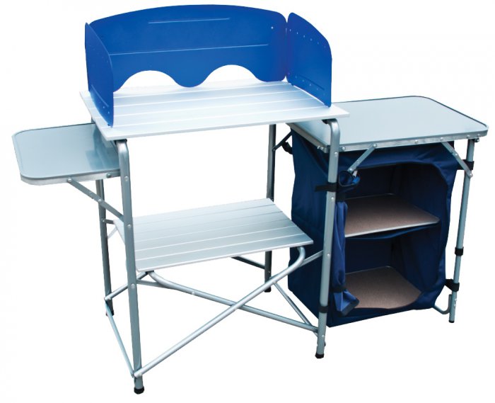 Походная кухня имеет съемный складной ветрозащитный экран, удобный шкафчик с полками для хранения посуды и продуктов. Ножки могут регулироваться по высоте, что придает дополнительную устойчивость. Кухня складывается в кейс, удобный для транспортировки и имеет дополнительный тканевый чехол, который защищает от царапин при перевозке и хранени!