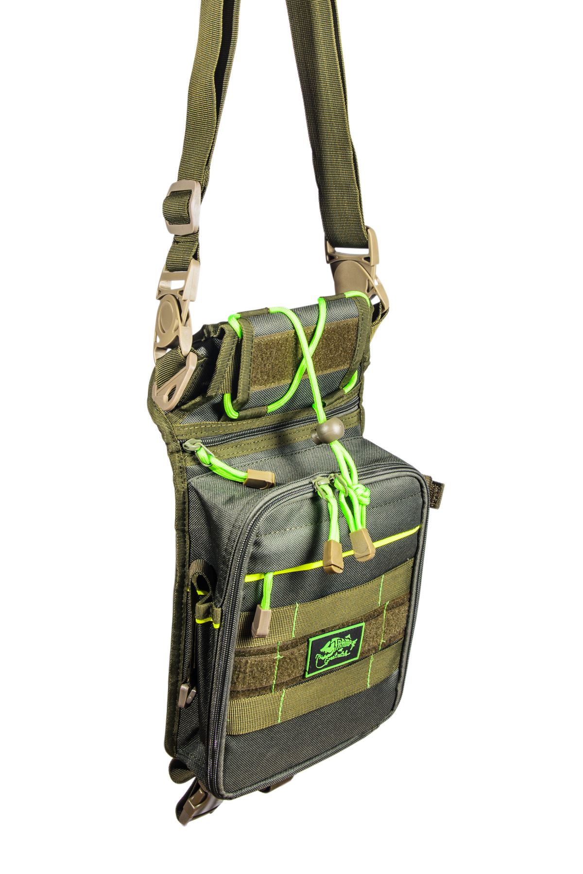 Сумка рыболовная нагрудная Tramp TRP-031 .Очень продуманная и функциональная, легкая сумка для рыбаков, которую так же по достоинству оценят так же и туристы.Сумку можно носить как через плече, так и на груди или даже на поясе на регулируемом по длине ремне. При необходимости сумку модно быстро сбросить с плеча , одним движением отстегнув ремень от сумки , использовав специальную клипсу.Основное отделение укомплектовано пластиковым боксом – органайзером на 5 отделений для снастей.На внешней фасадной стенке – система крепления дополнительных навесок molli, дополнительный кармашек на молнии.