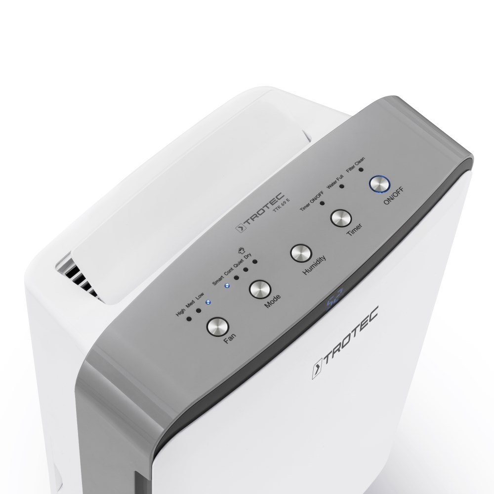 Осушитель для дома Trotec TTK 69 E - инновационный прибор, который не только устранит повышенную влажность в помещении, но и сделает это "по умному". Встроенная Led-панель поможет настроить индвидуальную работу и не вызовет затруднения даже у человека, который первый раз использует осушитель воздуха. Красивый дизайн прибора обеспечит совмещение с любым интерьером, и может даже добавит в него изюминку. А вот небольшие размеры агрегата помогут ему стать незаметным, учитывая бесшумную работу, а Вы легко сможете спрятать его в шкаф, если прибор находится в выключенном состоянии. Корпус осушителя имеет пластиковую основу, но высокого качества. Встроенная специальная шторка позволит выбрать самостоятельно направление потоков воздуха, что делает прибор еще более эффективным. Поможет продлить срок службы такой функционал: автоматическое выключение при переполненном баке для конденсата, и оповещение об этом, датчик для указания про загрязненный фильтр, электронное оттаивания для предостережения замерзания испарителя. Осушитель воздуха может работать в режимах автоматического управления, при непрерывном осушении, а так же при постоянном контроле влажности в помещении с помощью гигростата. Автоматизировать работу поможет бак для конденсата на 4 литра - с такой емкостью уменьшиться время, уделенное прибору.