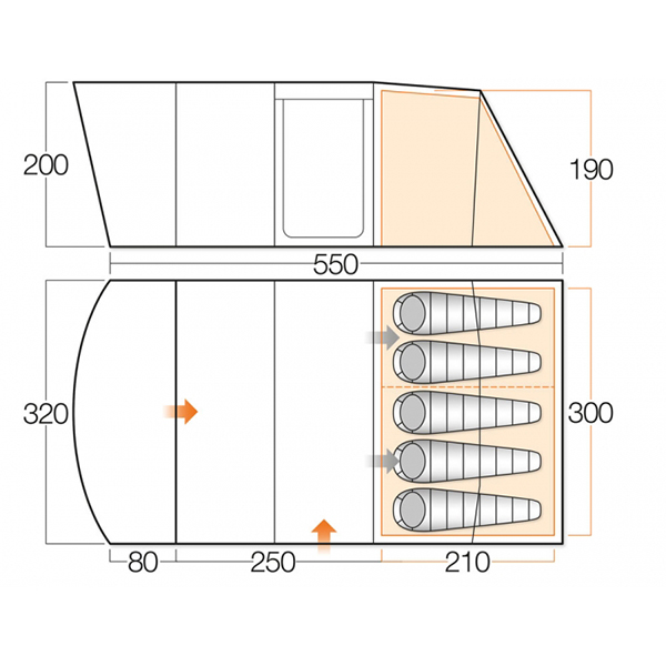 Внешняя палатка (ДхШхВ), мм: 5500 х 3200 х 2000