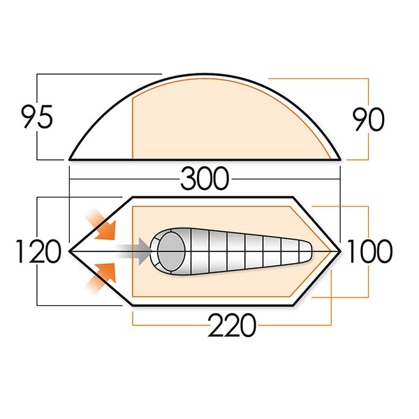 Внутренняя палатка (ДхШхВ), мм: 2200 х 1000 х 900