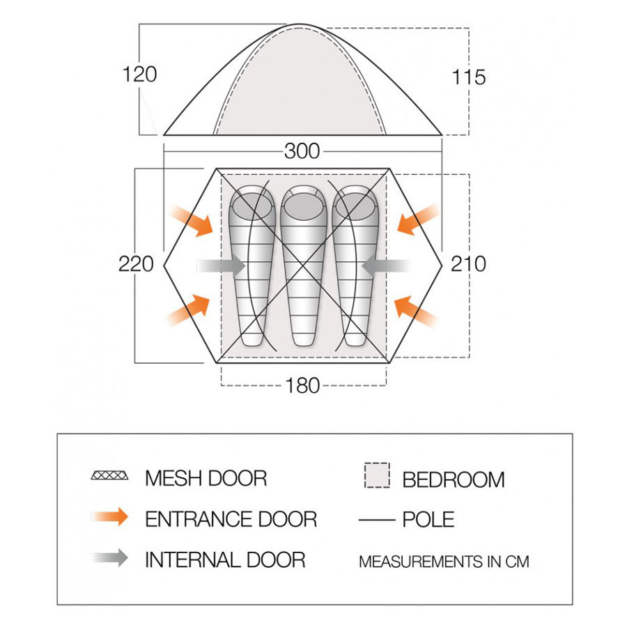 Внешняя палатка (ДхШхВ), мм: 3000 х 2200 х 1200