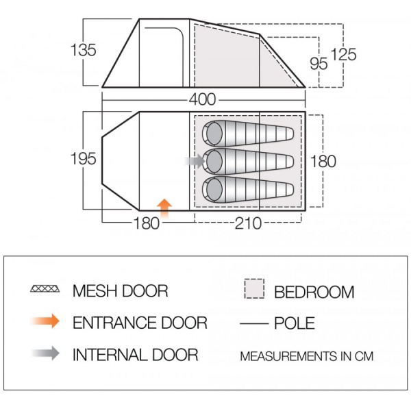Трехместная туристическая палатка Vango Skye 300 Treetops хороший выбор для небольших семей, пар, друзей и скаутских групп. Возможность использования для различного отдыха от выходных на природе до многодневного кемпинга. Тоннельная конструкция с тремя дугами увеличевает высоту и полезное внутреннее пространство палатки. Надежность конструкции гарантирует запатентованная система TBS®II (Tension Band System) от Vango, которая увеличивает сопротивление сильным ветрам и предотвращает боковое движение палатки. Комфорт сна обеспечивает дышащий материал Polyester и затемненная внутренняя часть палатки. Данная модель палатки прошла испытания на пожароустойчивость материалов и протестирована погодными факторами согласно Международному стандарту ISO5912 и Европейскому стандарту безопасности EN5912.