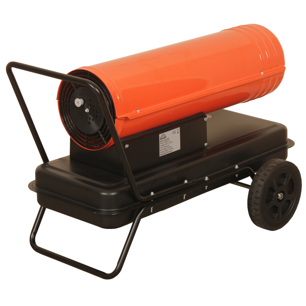 Обогреватель Vitals DH-300 относится к промышленному отопительному оборудованию, работающему на дизельном топливе. Vitals DH-300 с прямым типом нагрева – компактное мобильное устройство, предназначенное для эффективного обогрева производственных и вспомогательных помещений большого объема (строительные объекты, склады, гаражи, торговые павильоны, теплицы, оранжереи и т.д.). Данная модель используется в тех случаях, когда в отапливаемом помещении отсутствуют люди и животные. Модель Vitals DH-300, обладающая тепловой мощностью 30 кВт, способна быстро обогреть помещение площадью до 300 м² (высота потолка не более 3 м). При этом помещение должно быть надлежащим образом утеплено, а также иметь небольшие тепловые потери. Процессы воспламенения и горения топлива, подачи и нагрева воздуха, а также аварийной остановки происходят в автоматическом режиме. Поток нагретого обогревателем воздуха, равномерно распространяющегося по помещению, составляет 720 м³/ч. При работе обогревателя продукты сгорания дизельного топлива выводятся в атмосферу помещения.